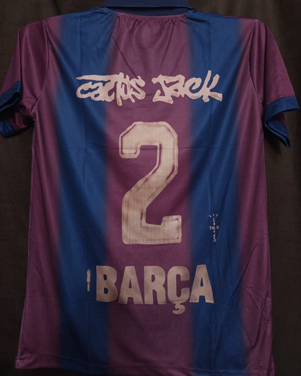Limited-edition inspired FC Barcelona 2000/2001 retro jersey with Cactus Jack streetwear design. Combines classic football heritage with modern urban style.
