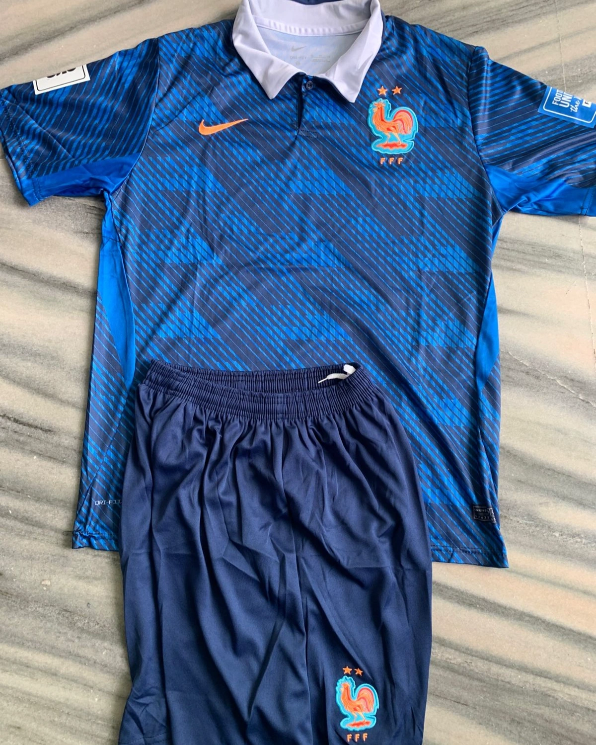 Show your passion for football with the France 2026 World Cup Home Jersey Kit. Designed with a modern blue pattern and iconic crest, this kit represents pride, performance, and style. Crafted using high-quality, breathable fabric, it ensures maximum comfort whether you're playing on the field or cheering from the stands.