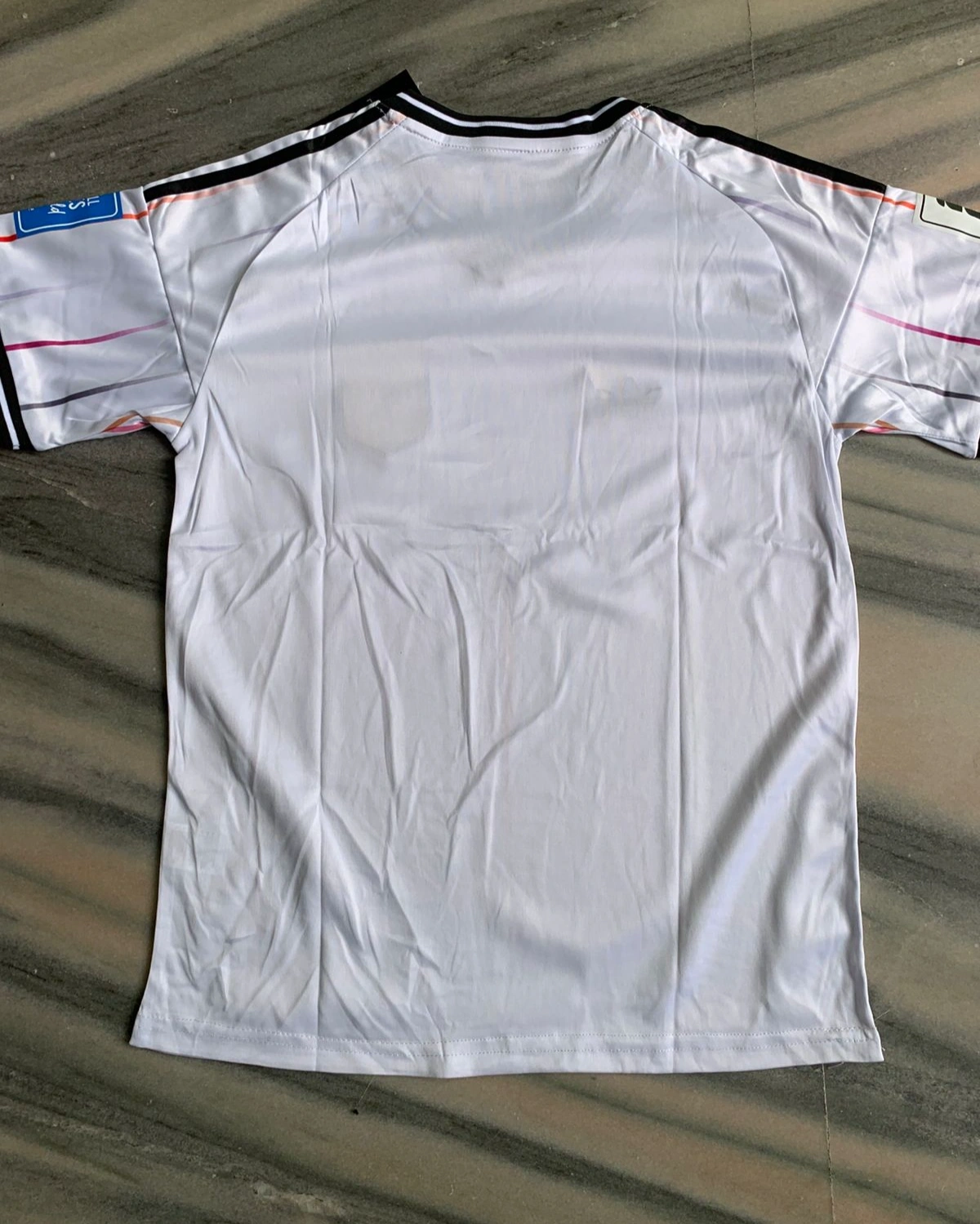Stand out on and off the pitch with the Japan 2026 World Cup Away Jersey. Featuring a sleek white base with vibrant multicolor stripe accents, this stylish football kit includes both jersey and matching shorts—perfect for fans and players alike.