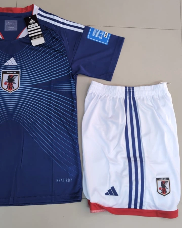 High-quality Japan football jersey and shorts set in classic blue design. Lightweight, breathable, and perfect for matches, training, or casual wear