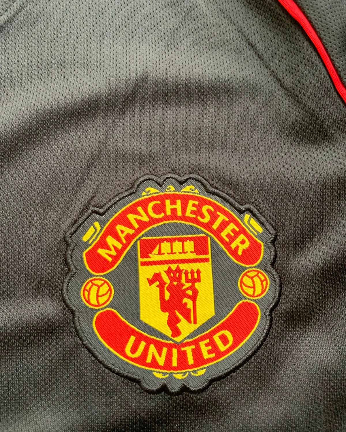 Step onto the field with timeless style in this Manchester United-inspired black football kit. Featuring a sleek long sleeve jersey with bold red accents and the classic AIG sponsor logo, this set captures the iconic look worn during one of the club’s most memorable eras.